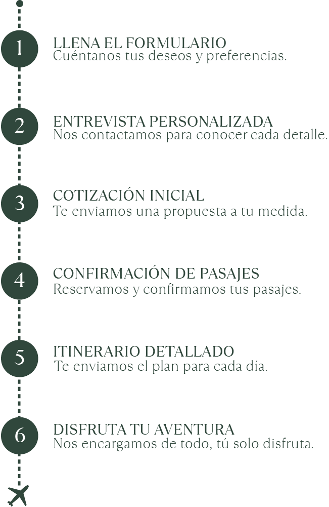 Te explicamos todos los pasos del proceso de organización de tu viaje con nosotras.
