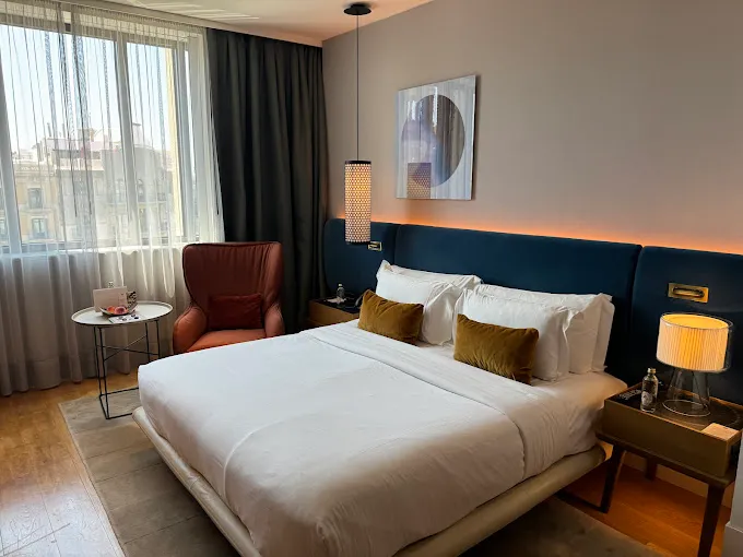 Las habitaciones son un verdadero refugio de paz, con camas de ensueño, baños de mármol y amplios ventanales que ofrecen vistas espectaculares de la ciudad. Disfruta de un baño relajante en tu bañera independiente mientras contemplas las luces de Barcelona.